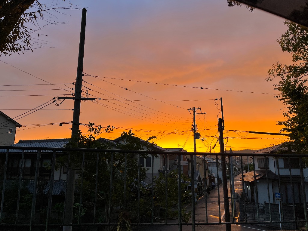加茂街道を走っているころには、西の空は真っ赤な茜空の夕焼け、瞬間の豪雨が嘘のような景色でした。