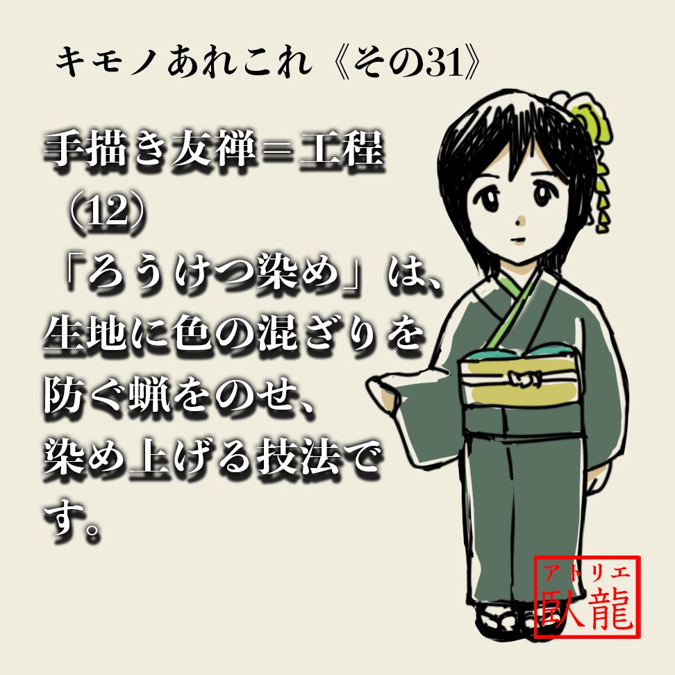 「ろうけつ染め」友禅染めでは色糊を使用しますが、ろうけつ染めの場合は、