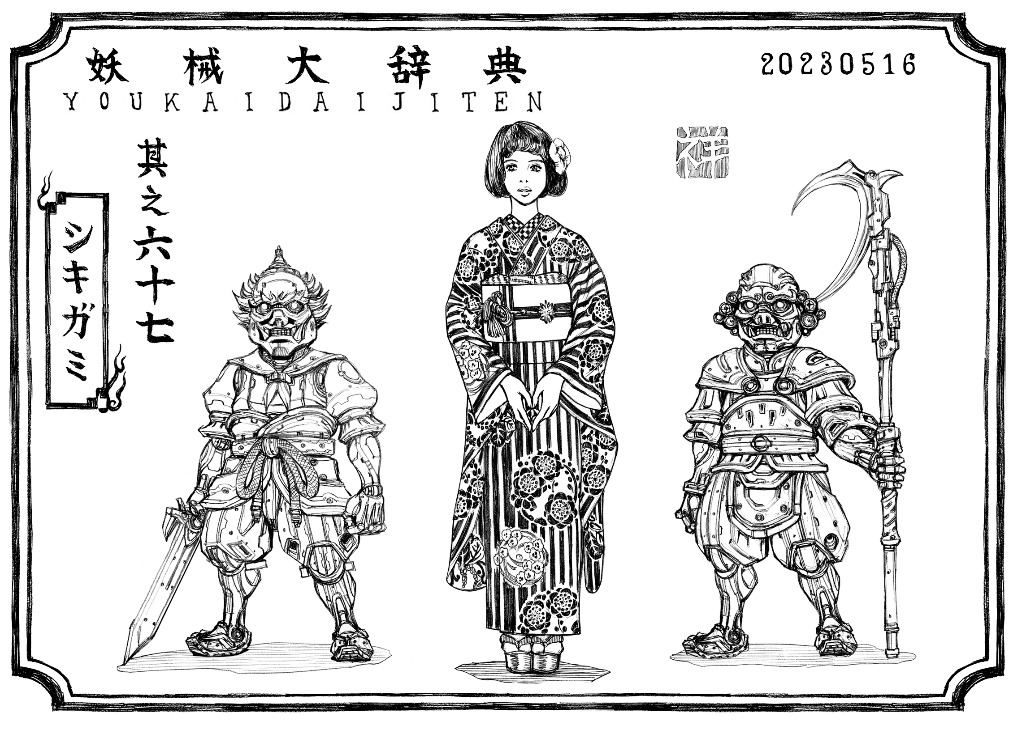 シキガミ(式神)は、陰陽師が使役する鬼神のことで、人心から起こる悪行や善行を見定める役を務めるもの。