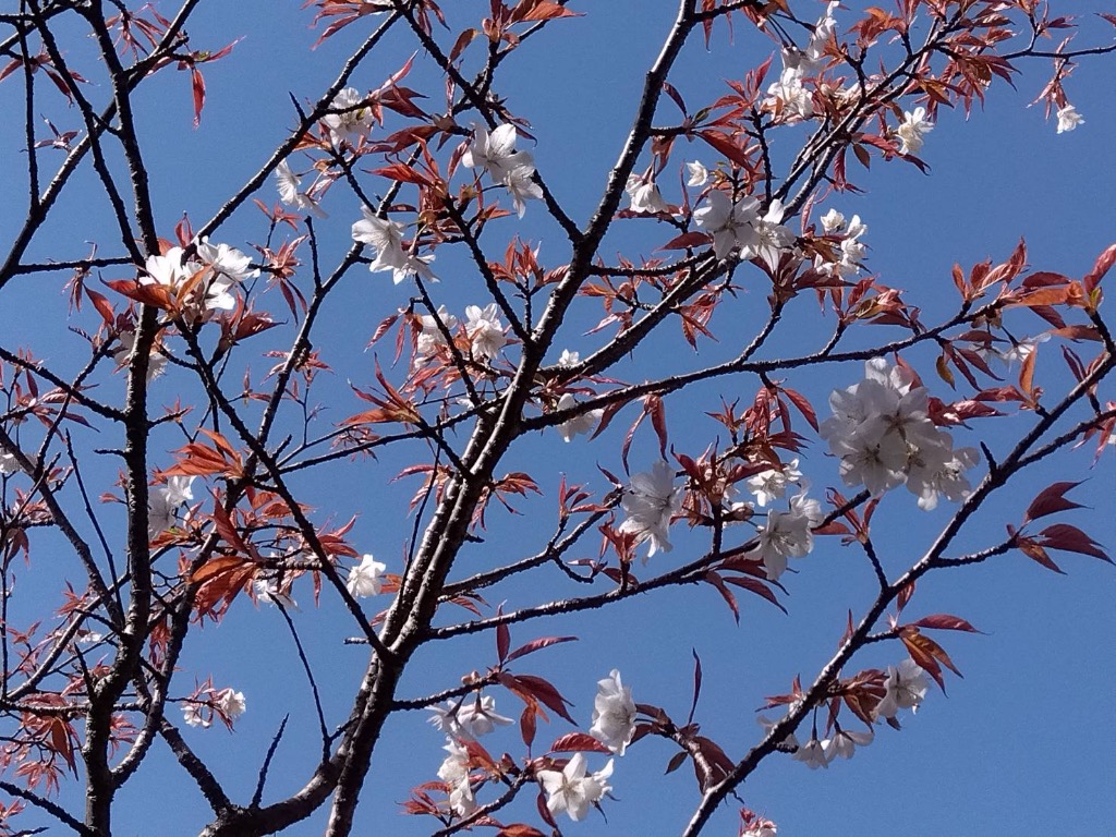 桜も多くが散り、風に吹かれて蝶のように上へ下へヒラヒラ!