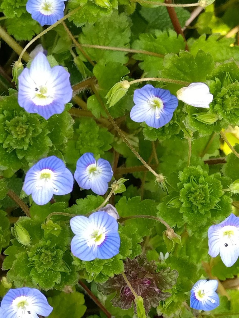 京都鞍馬二ノ瀬の春はオオイヌノフグリが咲き誇り、ヤブ椿も沢山咲いています。