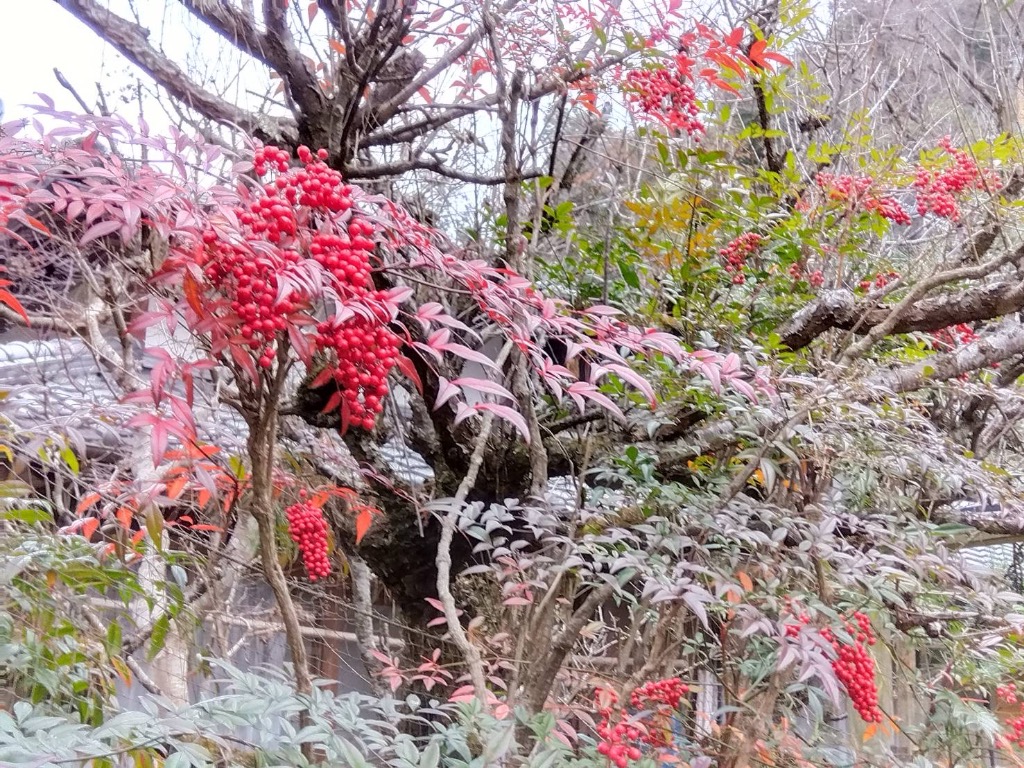 何処も枯れて冬景色、その中で赤い実が目立ちます。万両の実が鮮やかな赤、あちらこちらに、ご近所さんのお庭に南天の実が沢山ついて、お正月には、欠かせない実たちです。実のようなまんまるな蝋梅の蕾がかわいい!葉が落ちなければ花は咲かないのだそうです。この木は毎年見事に咲いて皆さんを楽しませてくれます。今年も楽しみです。昨日は冬至でした。裏の柚子は今年は数える程しか成っていません。昨年は沢山実ったので、成り年と成らない年があるようです。それでも、ご近所さんから手作りの柚子ぽん酢を頂き