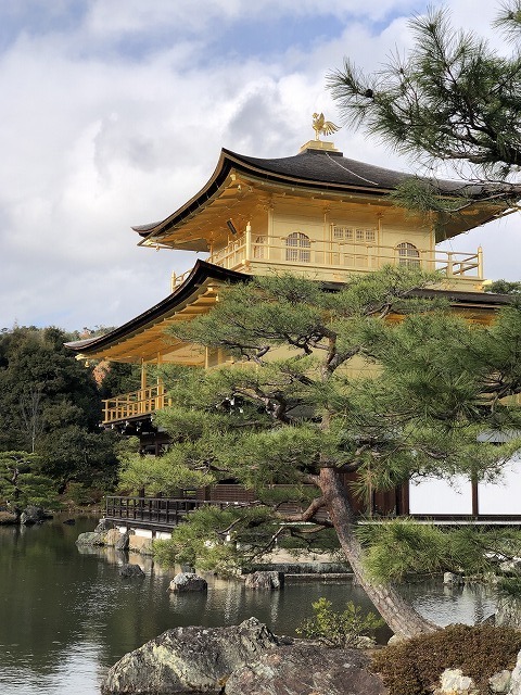今年一番の寒い日で、ひとっとき小雨が金閣を移す水面をなぜて通ると、映る金閣寺が細かく揺れるさまは綺麗な金閣を見るより幻想的でインスタ映えしていました。(写真が撮れず、残念!)