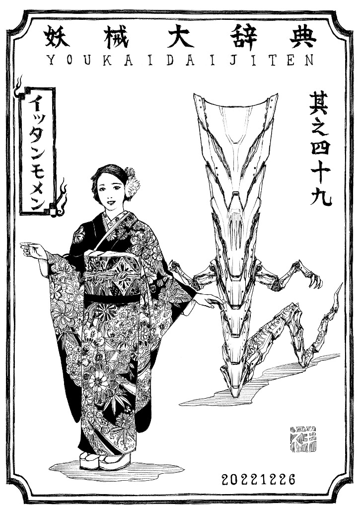 イッタンモメン(一反木綿)とは、約一反(長さ約10.6メートル、幅約30センチメートル)の木綿のようなものが夕暮れ時にヒラヒラと飛んで、人を襲う妖怪とされている。