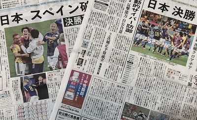 連日新聞のトップ面に踊る「歓喜と称賛の文字」、サッカー「ワールドカップ」の記事。