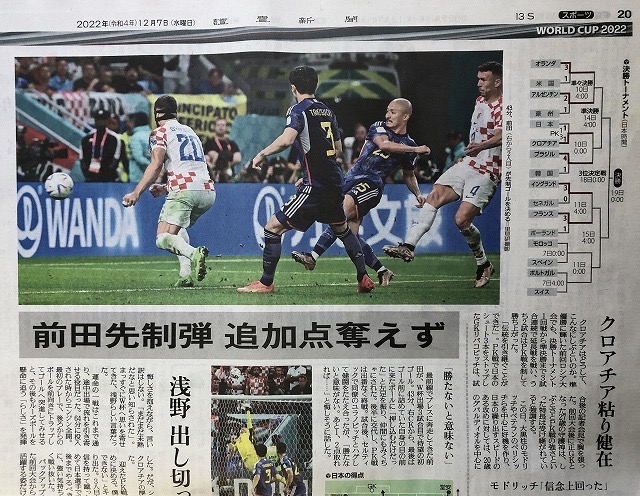翌日の新聞には堂安選手や浅野選手のように思った以上に派手な記事にはなっていなかった。