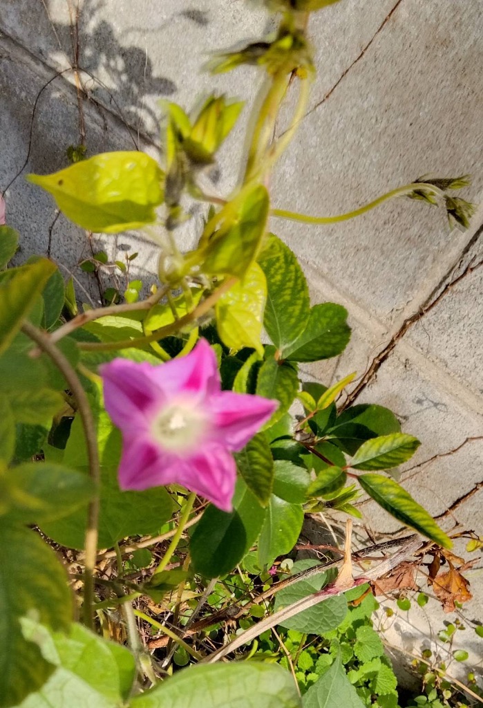 朝顔が可哀想なくらい、最後の力を振り絞って咲いています。