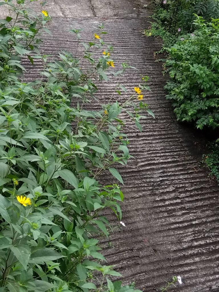 家の横のガレージの道も、ふさぐほどに菊芋が!