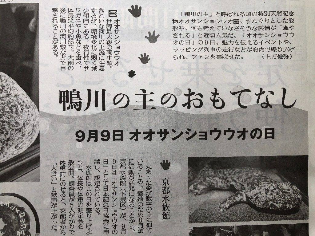 画像:9月9日―オオサンショウウオの日(読売新聞の朝刊より)