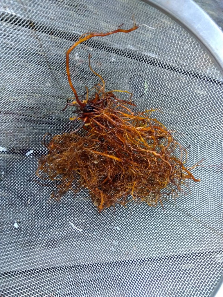 茜が採れました。今朝洗濯物を干していると、鉢に挿し芽してあった茜の葉も茎も消えて無くなっていました。京都鞍馬もよく降った長雨で鉢の中の土が詰まって排水が出来なくなって溶けてしまった様です。