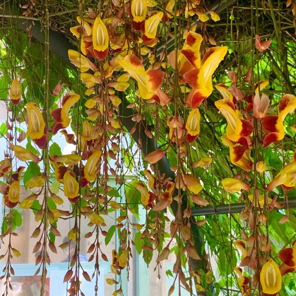 ツンベルギアマイソレンシス、何とも難しい名前。インドが原産のとても不思議な花、どの花も個性的で不思議です。