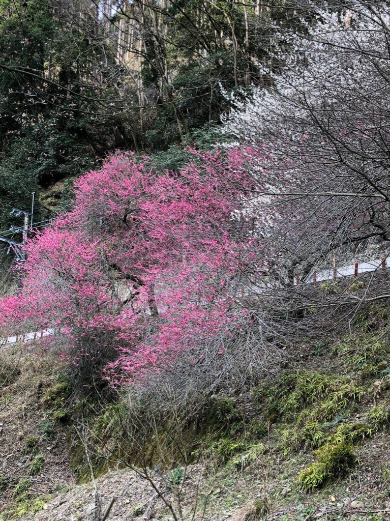 ここ鞍馬二ノ瀬界隈の桜は京都市内よりも2~3日遅れて開花しますが、丁度今、窓外から見渡すと梅の花の白と桜の花のピンクが入り混じって咲き、しばらくすればこの地域も気温も上がりパッと明るい桃源郷の如く満開に彩られてきます。