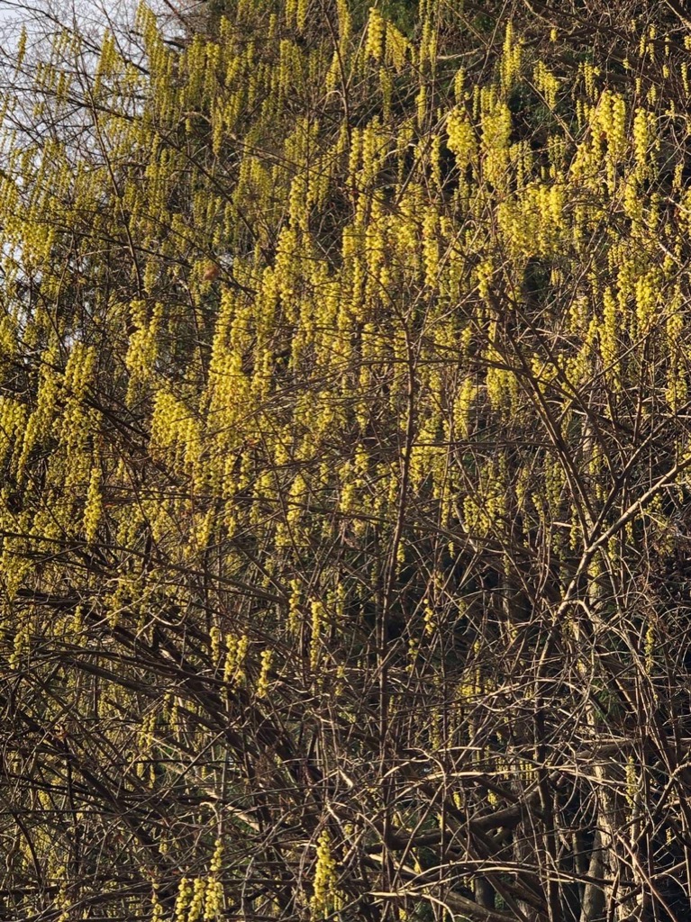 朝に貴船を歩いていると、黄色のキブシがファッションナブルに咲き乱れ、紅白の梅がまさに春爛漫。