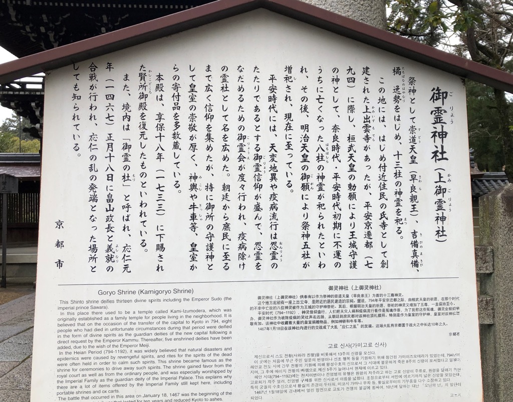 京都市上京区に「上御霊神社」があります、平安時代には天変地地異や疫病除けの神社として名を広め応仁元年には応仁の乱の発端となった場所としても知られているという神社です。