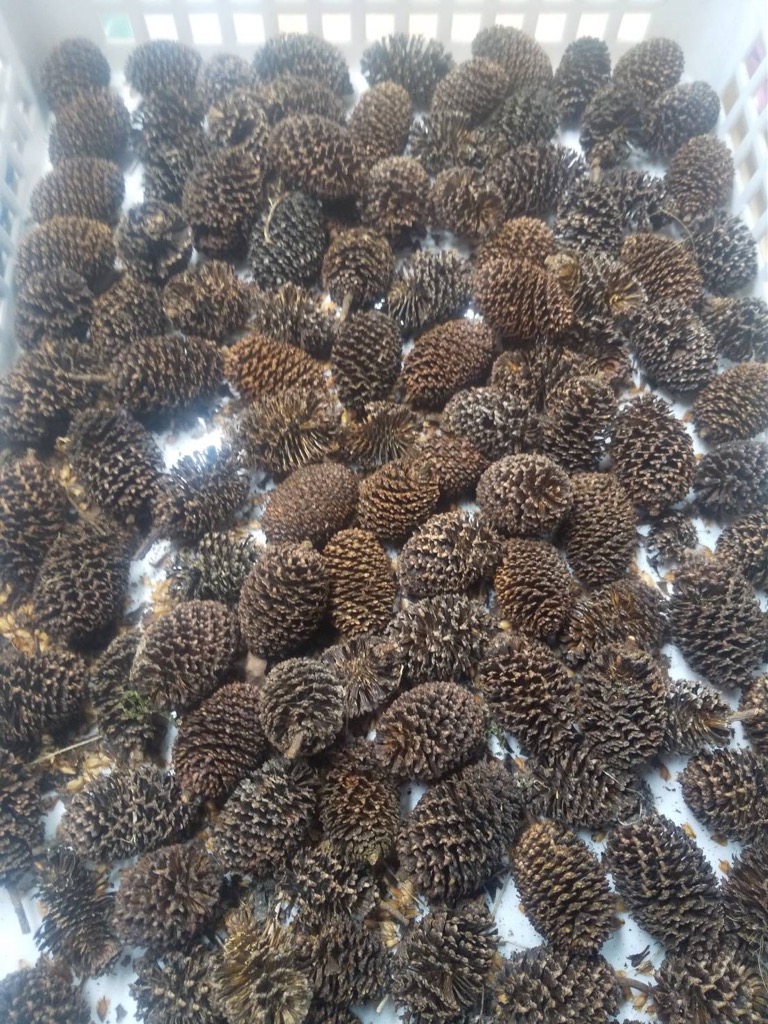 矢車附子は、昔はお歯黒にも使われたそうで、実を拾って染め物にします。