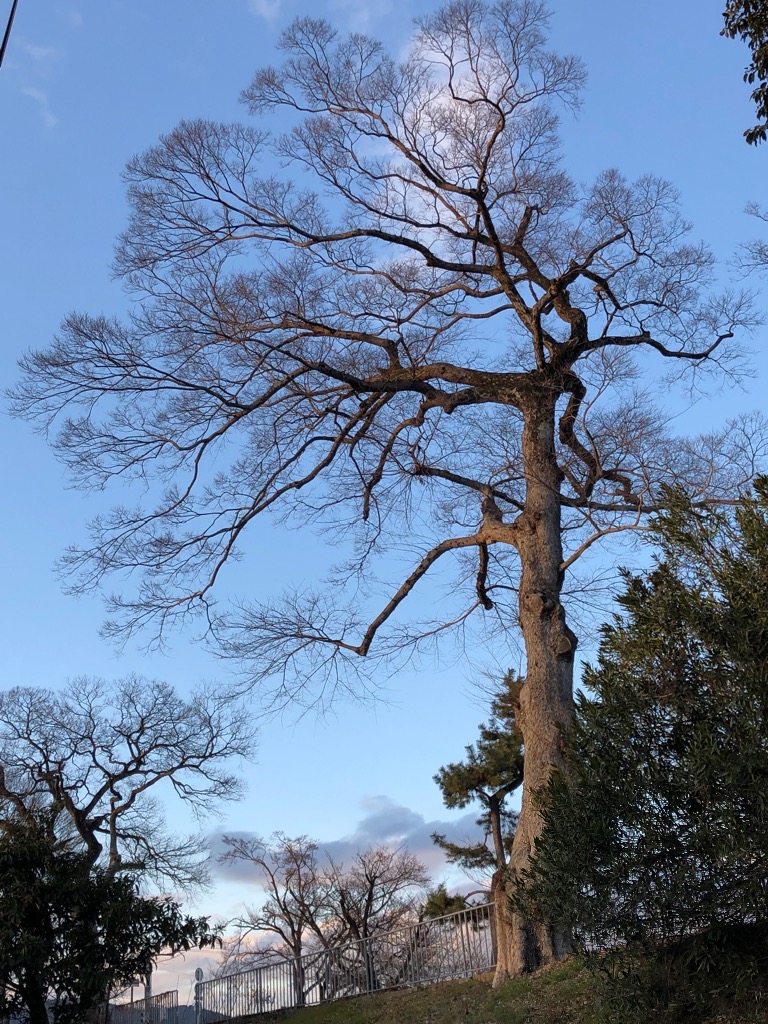 幹は太く先端に行くほど細くなるのはわかりますが、この様な巨木を遠くから眺めると、添付画像の如く葉脈の様な枝のシルエットが目に入ります。