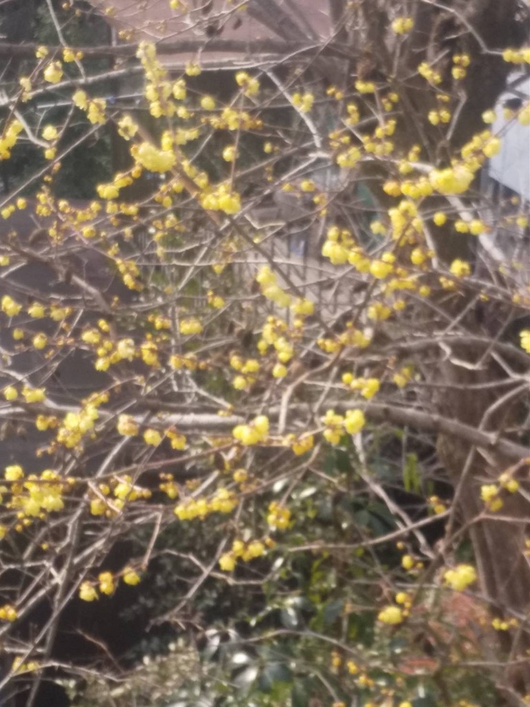 村のお宅の庭に蝋梅のインスタ映えするほど綺麗なこと。渋柿が美味しくなったのでしょうか?メジロがついばんでいます。うるさいヒヨドリもつついていました。