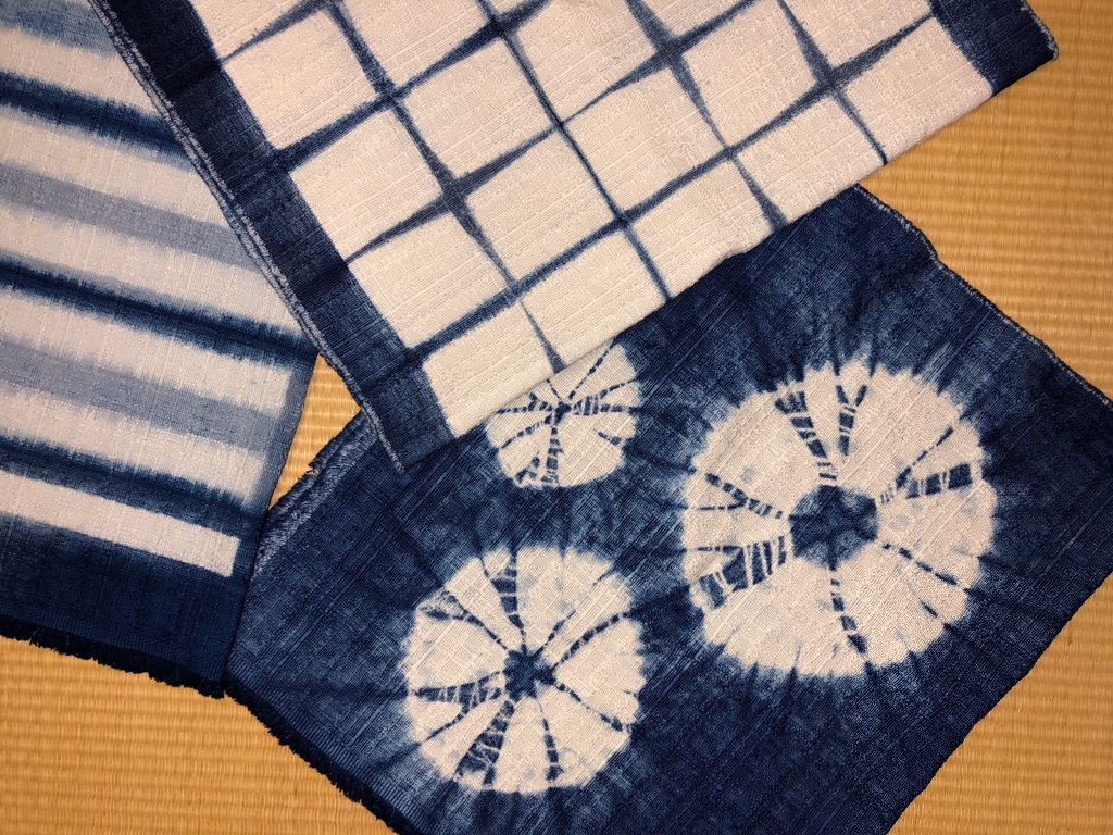 生地も面白い風合いがあり、藍染めのデザインやマーブル染めの模様がとても面白く、