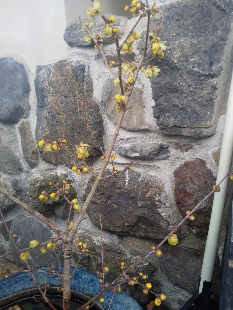 松の内も過ぎ片付けなければと思いつつ、まだ花が可哀想とずぼらを決めこんでいたのですが、蝋梅はこれから満開になる様で、蕾が開き始めると良い香りがしてきます。