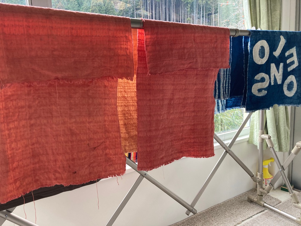 一昨日も寒く、朝は前日に和雑貨を染めた茜と桜の染液が凍っていました。