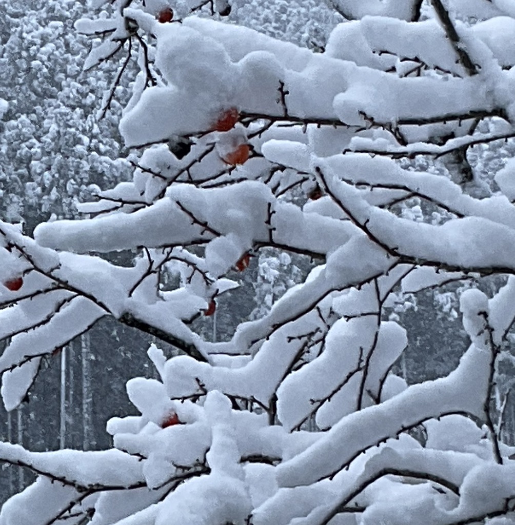 年内には雪は降らないだろうと思っていたら、そこそこの積雪で10㎝ぐらいは積もり真っ白の世界でした。