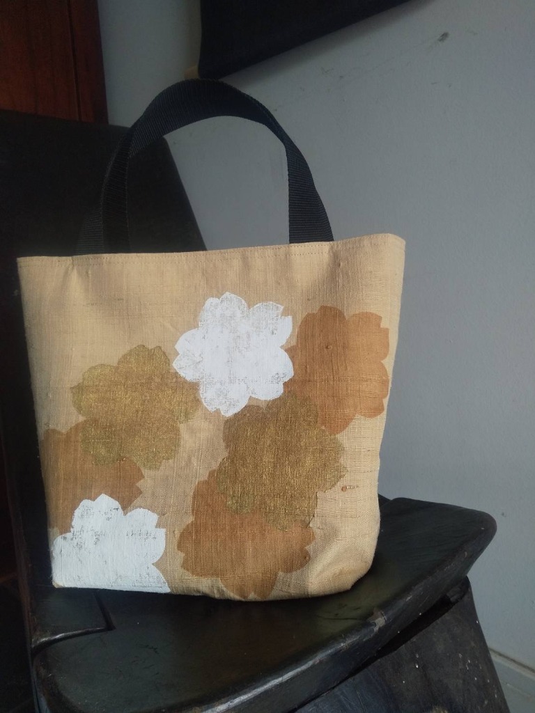 世界に一つしかない一点物の、柿渋染めで描いた桜柄のトートバッグッ!