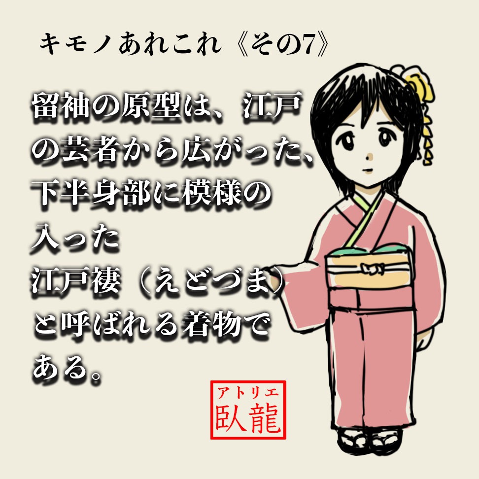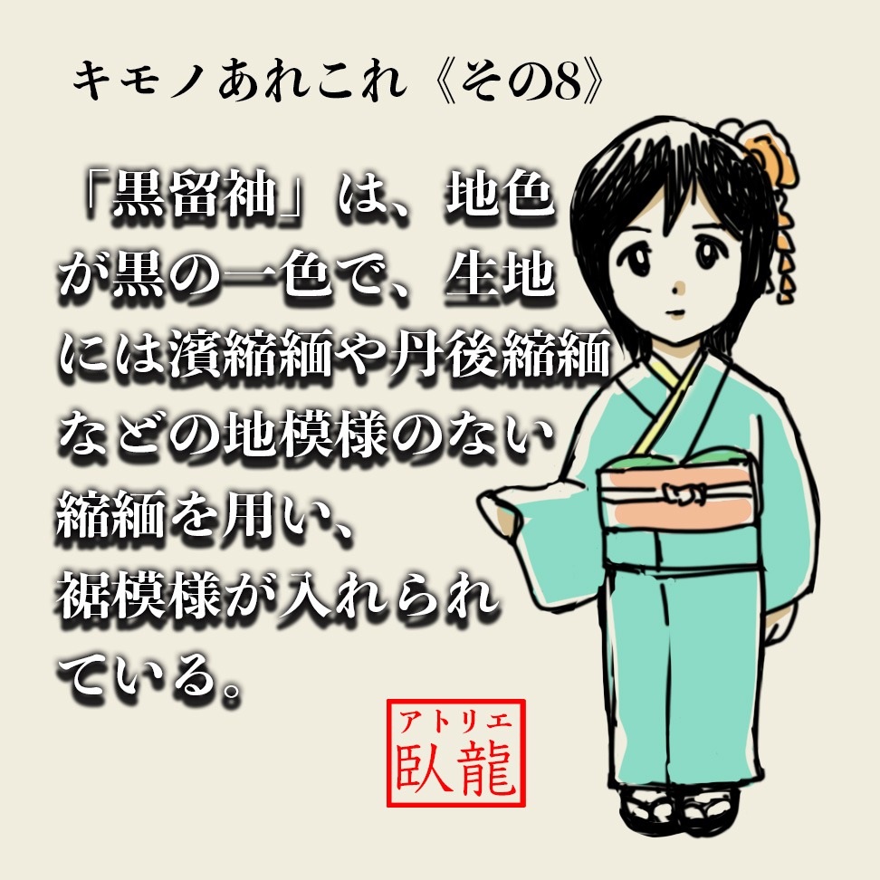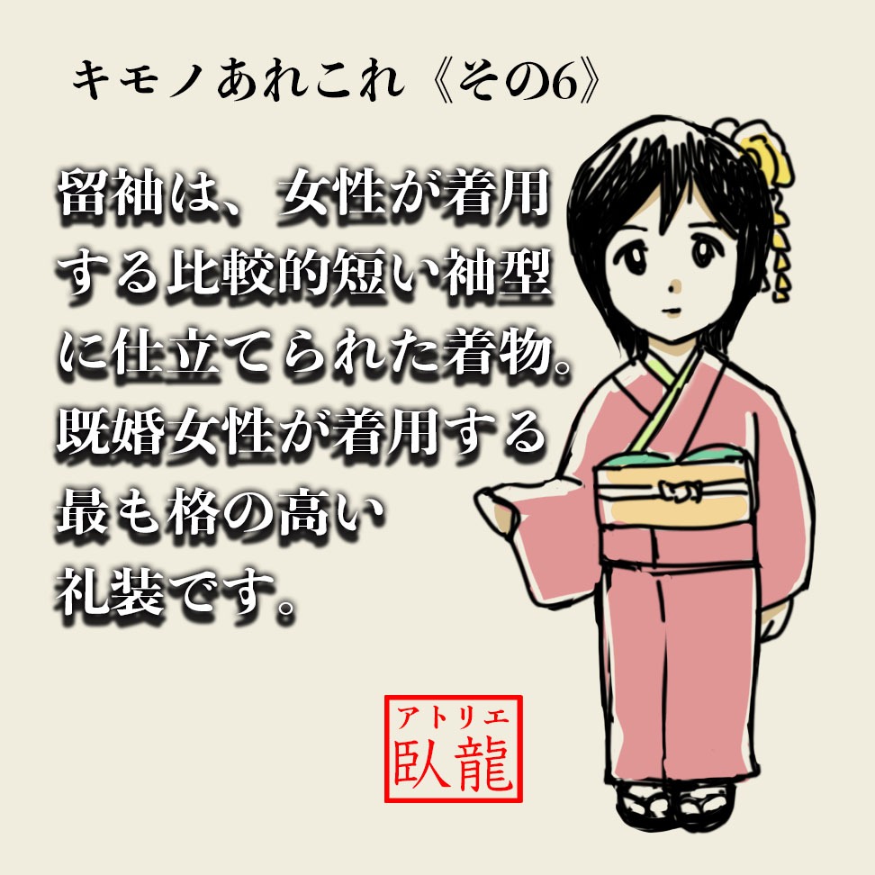 さて、「留袖」とは、婚礼の「振袖」の袖を短く仕立て直したことに由来しているそうで、