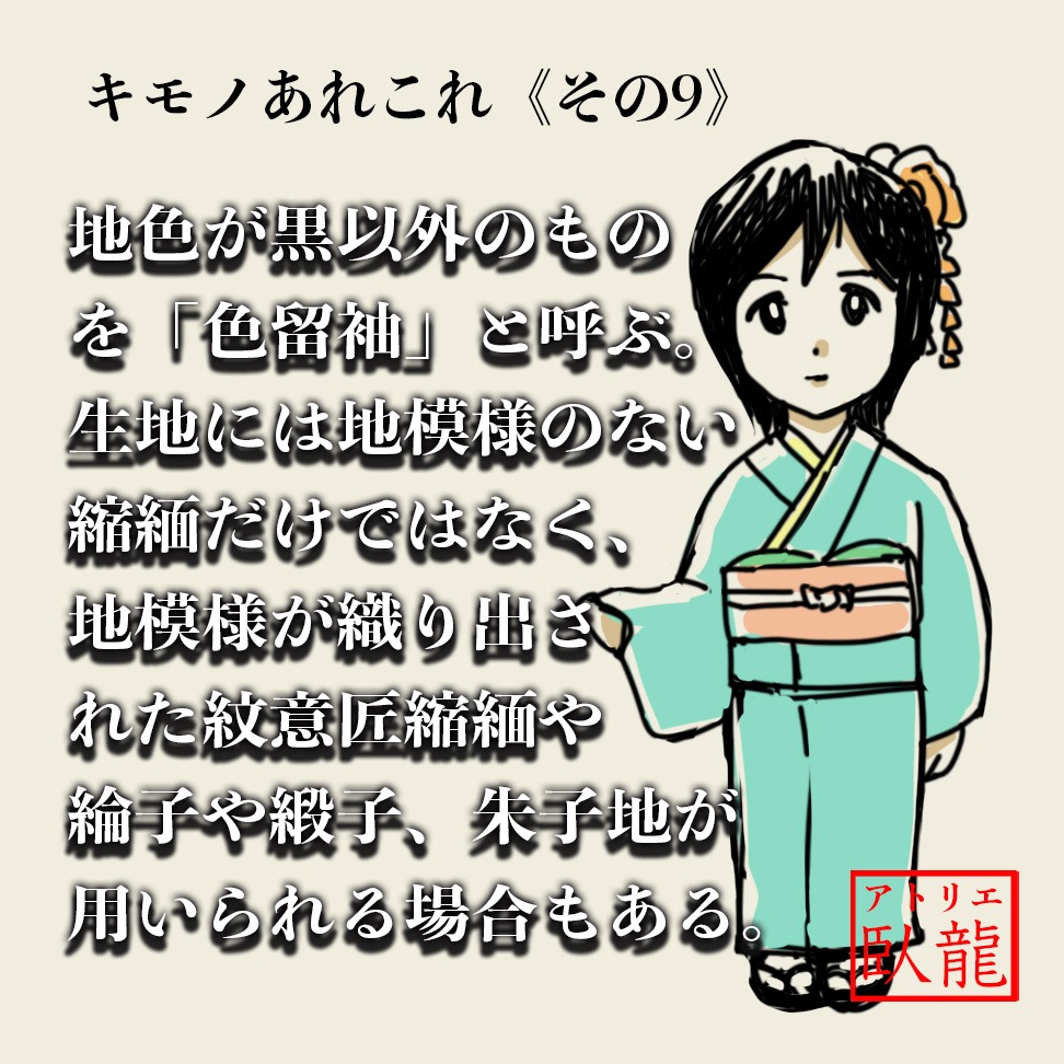 しかし本来、「留袖」は「振袖」をリサイクルしたものであったので地色はさまざまだったが、