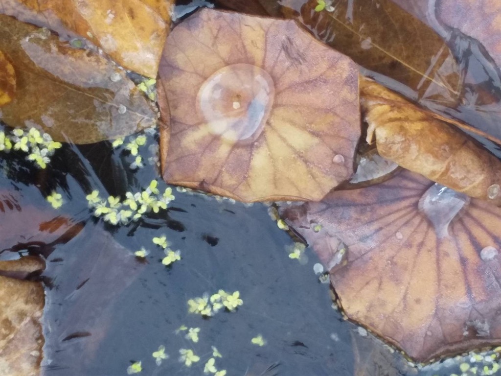 一昨日の朝は、ベランダと屋根が霜で真っ白に、蓮の鉢にも薄氷がはって、冬の訪れを感じます。