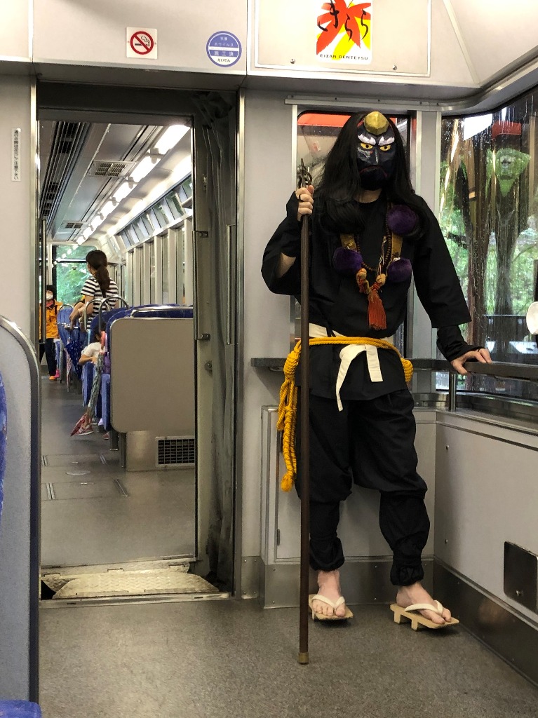 鞍馬山から降りてきた烏天狗が乗っていて驚きました。